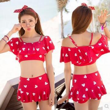 2016新款韩国可爱少女游泳衣分体裙式平角裤显瘦短袖沙滩女士泳装