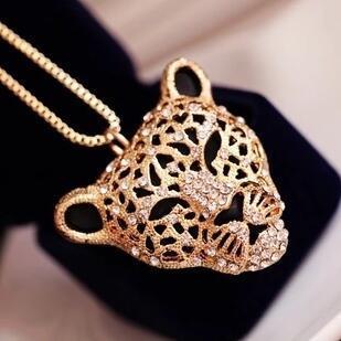 豹头合E101外贸复古水钻闪钻 项链女欧美霸气王毛衣链长项链直销