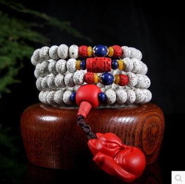 山人堂 海南天然顺白高密苹果珠星月菩提朱砂大狐狸佛珠手链批发