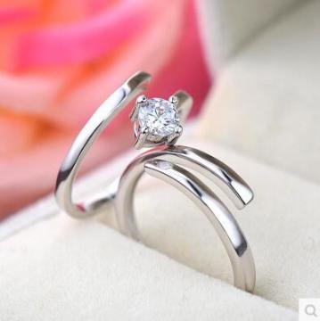 925纯银镶嵌锆石开口情侣戒指一对爱交织男女活口可调节指环戒子
