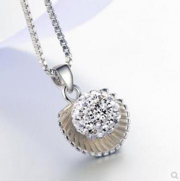 2016新品韩版满水钻球925银项链吊坠 女款 饰品 贝壳造型