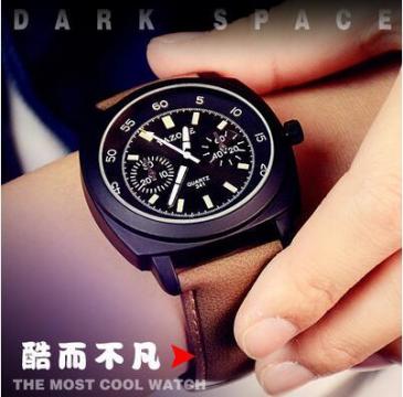 2016年新款男表简约韩版大表盘商务石英表