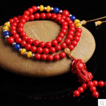 天然红朱砂手链貔貅毛佛珠手串