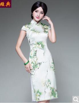 华族经典重磅真丝旗袍裙短款修身夏装改良时尚旗袍连衣裙日常